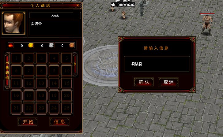 卖方需点击系统菜单中的个人商店,点击信息输入摊位名称,放入摆摊物品、输入价格完成摆摊